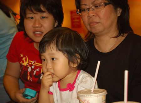 then family n relatives came.. hehe.. big big grp.. =D took pics.. go frm table to table.. hehe.. gt ang bao.. presents.. pooh balloon(explosive.. hahahaha..).. t-shirt.. memories in a bk.. tissue paper.. haha.. etc..