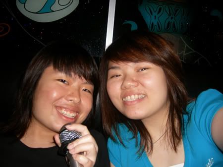 met twin.. went k while cass had dinner with her mum n fren.. oooo.. FUN!!! N FUNNY!!! We got a room tt is suppose to be for 10 pple.. coz no more suitable rm for 2.. WOOHOO.. SHUANG.. n the best part abt gng at 7pm is.. if a lot of pple.. they shoo us out at 10.30.. is nobody.. then till 3 or shop close.. WOW.. haha.. sing till 11+.. had to stop.. =( coz meeting cass.. really sing dao shuang.. haha..