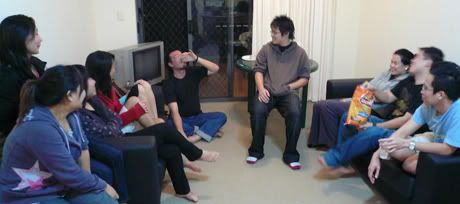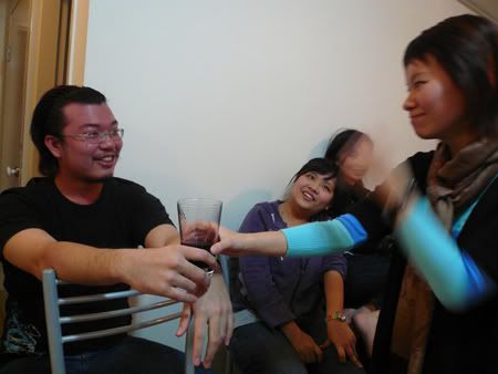anyway.. we were making him drink n all.. oso to push time till 12am so tt can wish him happy birthday then go home.. haiyo.. time pass super slow after sometime.. hehe.. then finally 12am!!! Yay!!! Sing song.. wish him.. then wanted to leave.. but dunno which idiot went to ask him some qn.. he tok tok tok.. cannot leave eh.. wah.. stand there listen super sian eh.. till me n my fren started discussing abt the wine.. hahaha.. more fun..