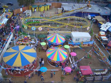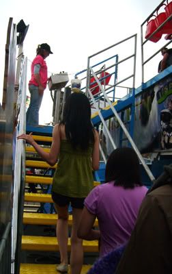 the ride we sat!!A$15!!tix!bye!!off we go!hehe..CUbackdown.. =DIt was drizzling!!Anyway.. After tt ride.. we cont to walk around.. went to another section.. all the stalls where to play games to win soft toys.. OMG.. it’s a simpson craze there man.. every store sure have the simpsons.. there’s this stall.. HAS A WINNIE THE POOH THERE.. tt was so cute!! Looks soft.. a bee on its tummy!!! I WAN!! But we all sux at playing this type of games.. haha.. sian!! Some more the games there so ex.. haiz!!!