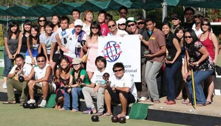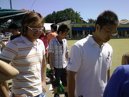 jus form 2 teams.. 8 bowls each team.. then there’s this white ball.. lyk those pool.. the white ball roll it.. almost to the other end.. then u can start the game.. roll 1 of ur 8 balls.. jus try to get as many of ur grp’s ball close to the white bal.. after rolling all.. the grp’s ball tt is closest to the white ball win.. fun fun.. n my grp won.. hehehe.. I think we were the noisiest too.. hehe..