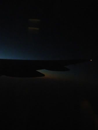 Stoning in the plane.. played ds.. had breakfast.. then saw the sunrise without the sun.. HAHAHA.. as in.. could really see the plane gng frm a dark place where its nite.. to a bright place where its day already!! The colour in the sky was nice.. dark blur.. orange.. yellowish.. light blue.. oooo.. some more no clouds.. the lines were obvious.. couldn’t really take a nice pic.. stupid window..