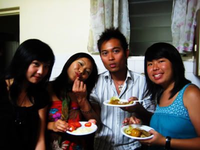 Slept for around 12 hrs.. hehe.. then rui cook for us lunch agn.. hehehe.. then got ready.. went to jiayi’s house.. get pic.. then went to jay/Fabian’s house for the weekly SSA dinner.. nice food.. more prata.. then gavin was saying among mich, jiayi, pauline, me.. I was the least tanned one!! =( I sad.. I thought I was tanned le.. hahaha.. then transfer pics.. then Ludwig kept asking me to play black jack with them.. coz he wanna win back his money.. hahaa.. say wat.. mahjong win big le.. nw dun wanna play black jack le.. hahahaha.. but dunno wat time gng off mah.. coz joel picking us up.. then tt princess.. went to play eh!! Wah lao.. we 3 nt playing coz dunno wat time leaving.. she went to play..