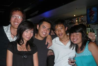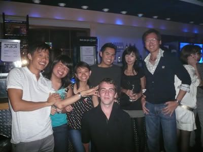 Went there.. had to queue agn.. sian sian sian.. we were at reiji/cesars.. some club for Asians one.. ang mo onli go there to pick up pple.. then reach in.. rui pass me his drink.. say he drank too much le.. hahahha.. they went in lyk 1 2 hrs b4 we came.. tsk tsk tsk.. then whole time there.. drink n dance.. nvr club in sg b4.. end up.. club here.. damn fun!! Oso coz of the company I went with!! Damn funny.. me n vanny kept saving rui frm mich.. twirl here twirl there.. hahahha.. fun fun..