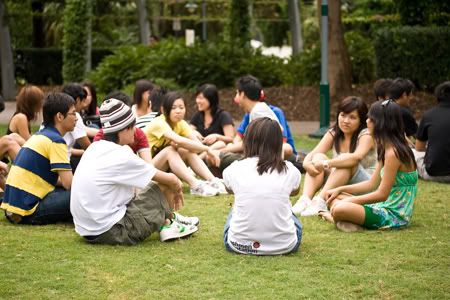 Then went there.. had to try n start the ball rolling.. so they started sitting on the grass.. intro.. then had to lyk start mingling with them.. haiya.. hate to do it.. hehe.. where got so many qns to ask.. hahaha..