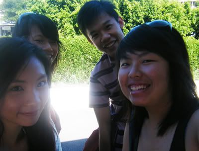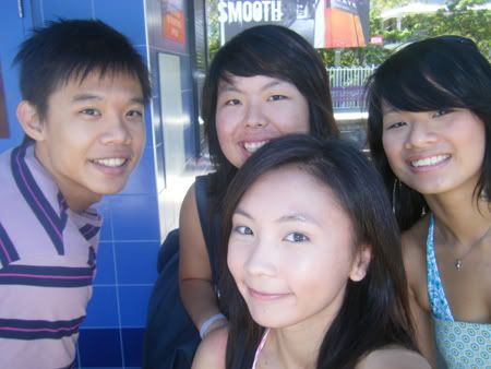 Hmm.. gt up at lyk 7!!! Bathed.. changed.. eat.. went church.. quickly rush home get my stuff then met vanny, rui n mich.. took bus to south bank.. stupid sign.. make u walk all the way up.. then tell u its on the other platform.. haiya.. whiles waiting.. took pics.. totally make ourselves lyk travelers.. hehehe..