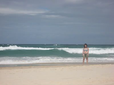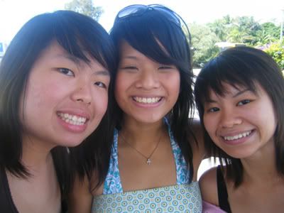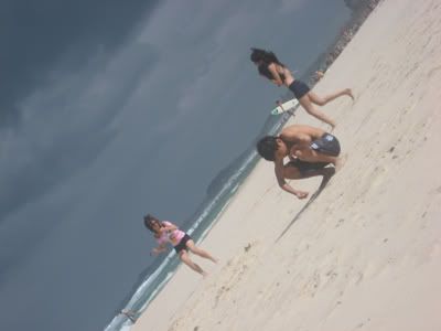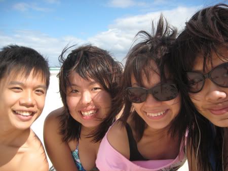Then later we went back into the sea.. this time rui joined us.. n mich sit out.. Pauline.. bu fang bian go into water.. hehe.. damn tiring sia.. kept trying to beat the waves.. rui kept gng further.. lyk every wave oso he can cross.. then we all kept being pushed back to the same place.. we had rui as our destination.. hahahaha. Everytime we reaching him.. we get swept away to pt A agn.. aaahhh.. tiring sia.. then gotta care if bikini still in place n all.. after awhile.. I gave up.. haha.. when to stand with Pauline they all.. wah lao.. wind blow.. sand hit u.. damn painful sia.. eee..