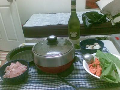 Prepare stuff.. then time to eat.. hahahaha.. STEAMBOAT!!! AT 2 SOMETHING AM!!! Hahahhaa.. we eat steamboat.. open wine.. moscato!! Hehe.. watch funny clips.. then eat till 3 4 something.. then we were thinking.. ok.. I shall nt slp.. watch clips n all till 7.. then I go home.. but I was stoning le.. hahhaha.. then tt rui.. can still kutik me.. say wake me up.. twit!!