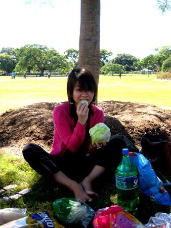 Walk in.. find nice spot.. sit down.. open food.. mum mum time.. hahaha.. eat eat.. take pics.. then went to see the roses.. wah damn nice.. damn a lot.. everyone take pic with diff flowers/roses.. hehe.. then we heard the ice cream truck.. then we went to find it.. n ate ice cream agn.. hahha.. then nua-ing time.. haaha.. lie on each other’s leg/tummy.. damn lazy feeling sia.. hahaha.. then rui tried to do hand stand.. nt tt successful.. hahahaha.. nua there for about 4-5 hrs.. then off we go.. home..