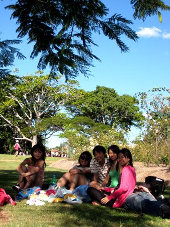 Hmm.. went church.. gt ready.. met mich, vanny, rui.. walk to south bank.. missed ferry.. so ate ice cream.. wait for ferry.. board ferry.. took pics.. met cormac on ferry.. then took to new farm.. met paulin n sil there..