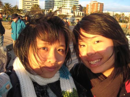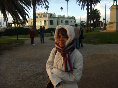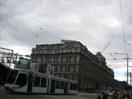 FINALLY.. REACHED MELBOURNE!!! Woohoo.. walked out of the plane.. wah.. freaking cold sia!!! Strong wind some more.. then tt belt thing.. to collect ur luggage frm.. was outdoors!!! Ma de!!!! Fingers frozen sia.. nose leaked non stop.. took sky bus to hostel.. checked in.. then left bags there.. then we went to find lunch..