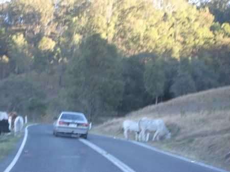 See the cows at the side of the rd.. they were really lyk beside ur car lah.. then I had to stop awhile.. coz there was a cow crossing the rd!!!!!!! damn funny lah..