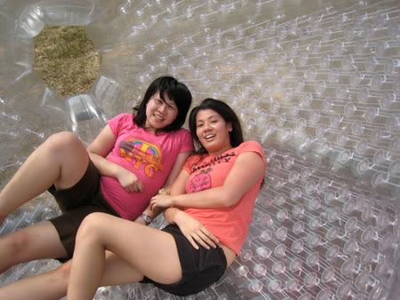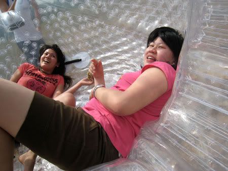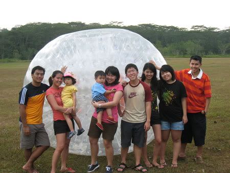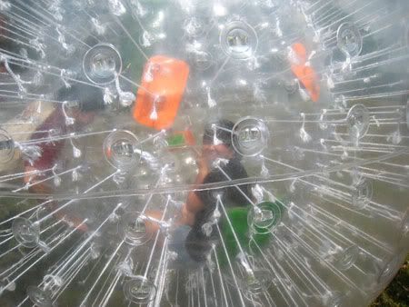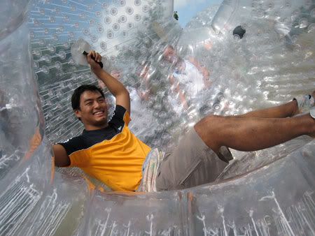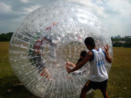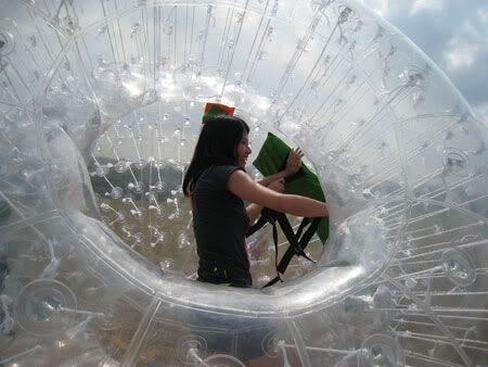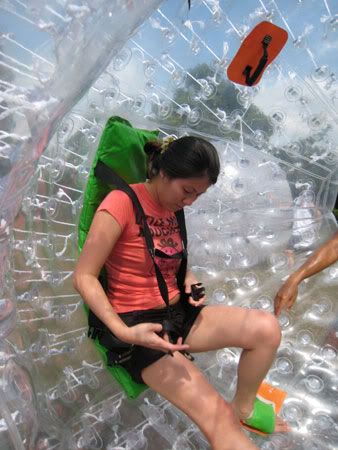 U n ur partner gotta stay in the ball.. n walk back.. SUPER DUPER TIRING CAN!!!! N the worse thing is to perspire.. ur body can sticky.. then will fall more.. haha.. then I was asking the guy.. can I go out and walk back.. haha.. then he said.. you can walk back.. but in the ball.. diao!! So no choice.. walk.. reached back.. wah.. chuan dao.. lyk just ran 2.4km lyk tt..