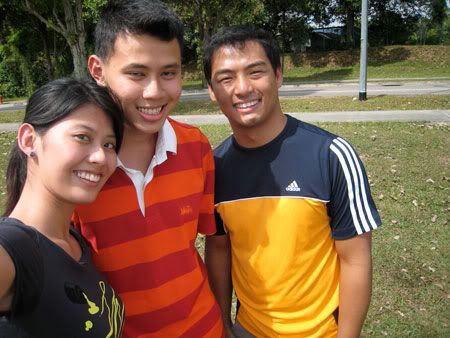 OMG.. I saw him puke.. I felt worse sia.. hahaha.. but gd thing I didn’t.. just felt horrible.. so I went once.. hehe.. after tt took pics.. then we played frisbee (dunno spelling).. quite fun.. but lyk cant throw far n the direction I wan.. hehe..