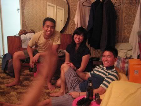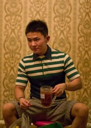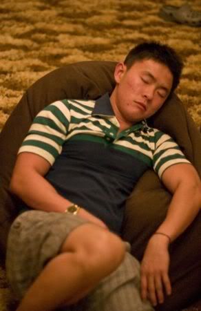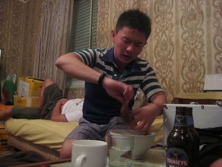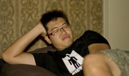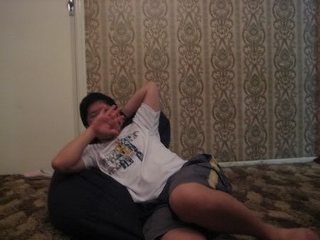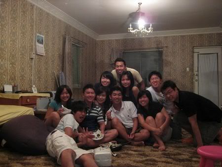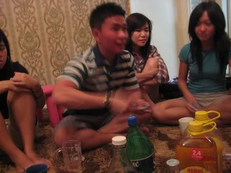 Then later 12am.. woke him up to sing b’dae song.. haha.. then after eating cake.. eh.. dunno this part is b4 seh or after.. she called his mum.. then he said.. hello mother.. happy b’dae to me.. happy b’dae to me.. hahahaha.. he was saying y they dun wanna call him.. y this y that.. then he call.. I think he called his bro n did the same thing.. damn funny.. hehe.. then we quite soon went home.. coz no fun le.. coz we made him drink too early.. haiz.. haha..