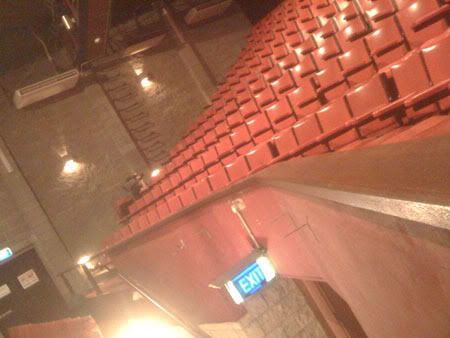 Gt up at lyk 7+ coz gt filming.. wah damn tired sia.. only lyk wat.. 3+ hrs of slp.. wah.. tired.. reached sch.. didn’t really leave on time agn.. anyway.. took all the equipments.. then we went to the 12th Night Theatre.. It is said to be haunted.. when you enter the place.. nt bad.. then when u start walking ard etc.. ooo.. feels quiet.. old.. then later we went into the theatre to film the place and interview the guy who work there.. then there was only 1 air con on I think.. the feeling is cold nt cold.. hot nt hot kinda feeling..