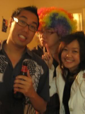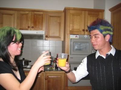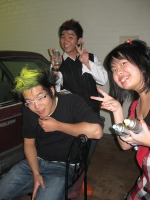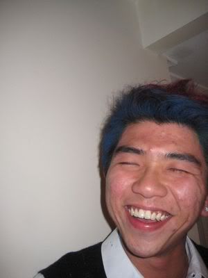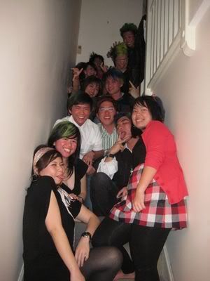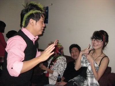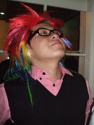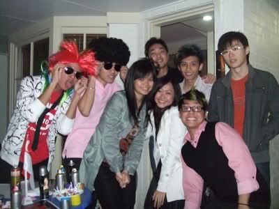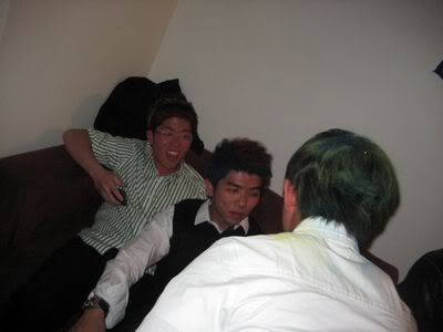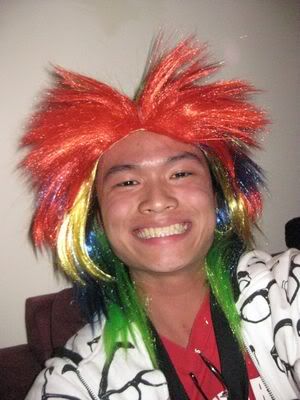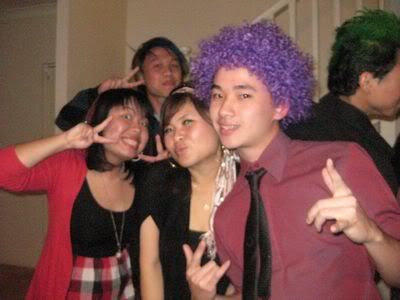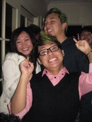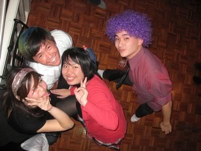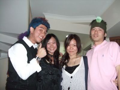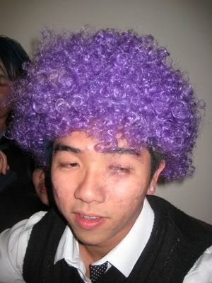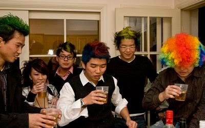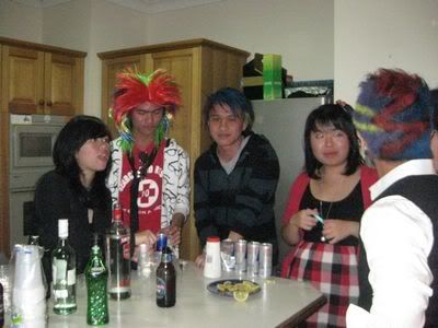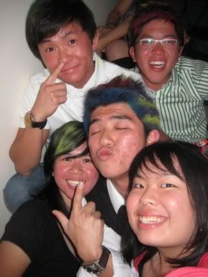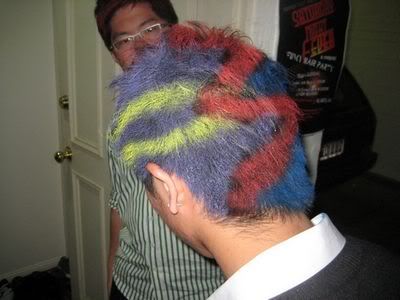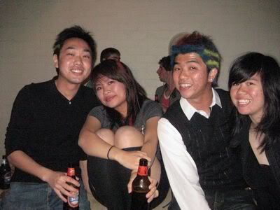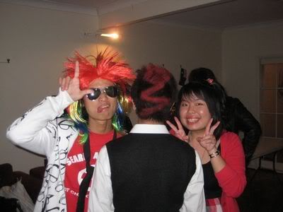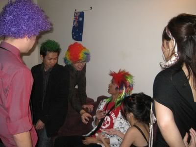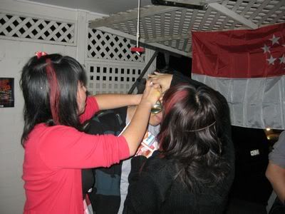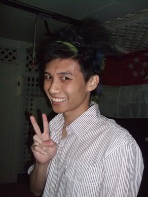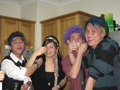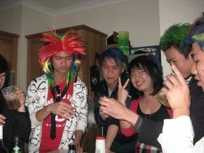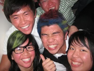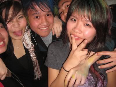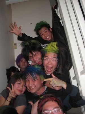 Reach there.. a lot of pek chek things happened.. cant be bothered to type it here.. then was suppose to do registration with bun.. end up.. I became the hairstylist.. hahahhahaa.. I “coloured” almost all the diff heads… hehe.. besides sean’s, ken’s, those with wig or head bands, kaiqi’s.. then the party begins!!!! Shots after shots.. no games no food.. gt chips n drinks.. agn… pple gt drunk.. hahaha.. n I think its so much more fun than mambo nite!!!! Success!!!!! =DDDDDD