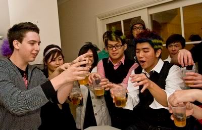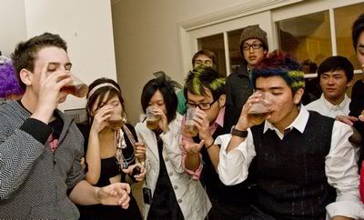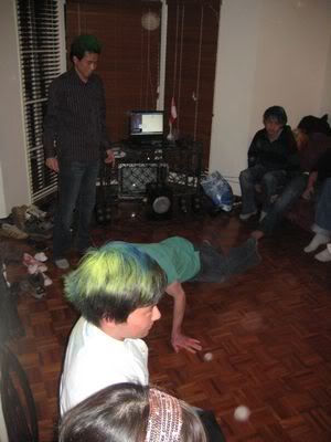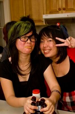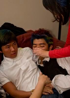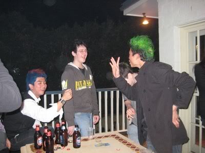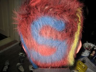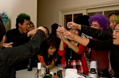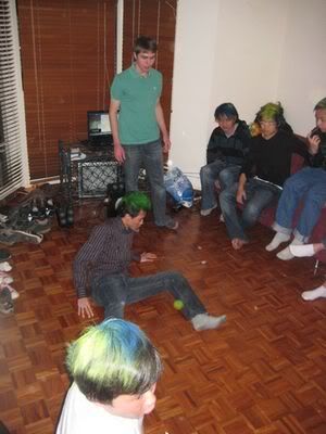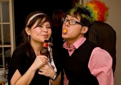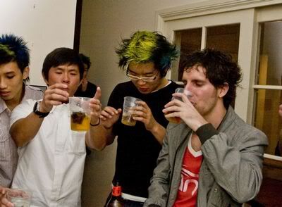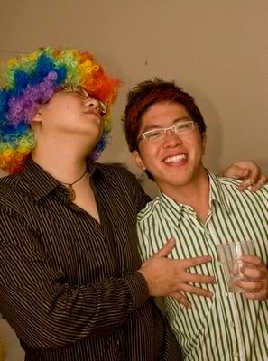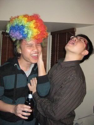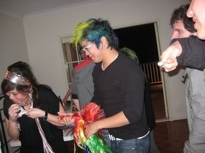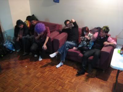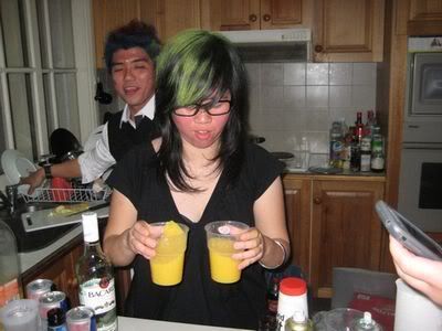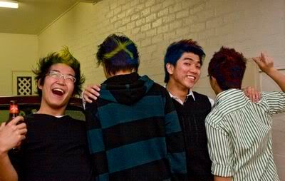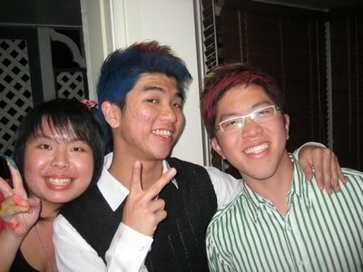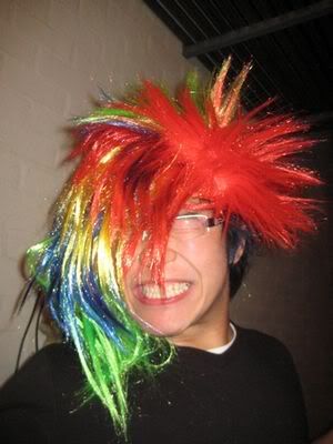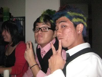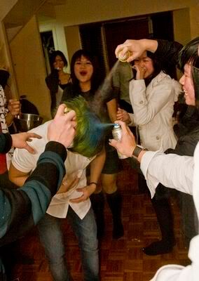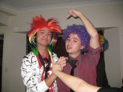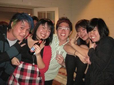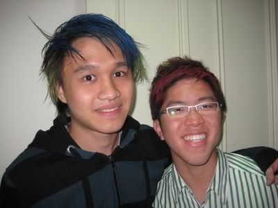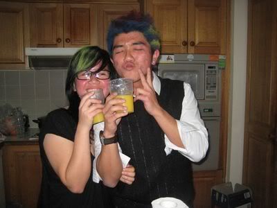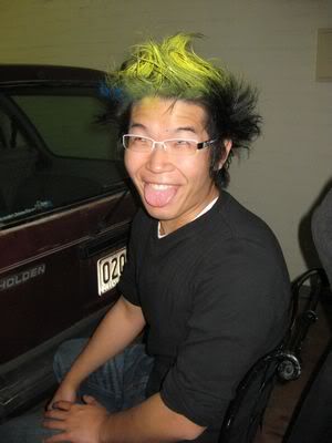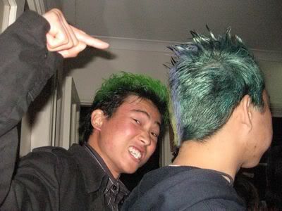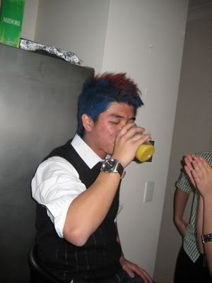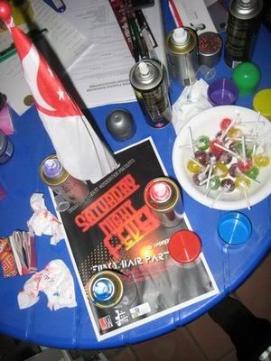 Reach there.. a lot of pek chek things happened.. cant be bothered to type it here.. then was suppose to do registration with bun.. end up.. I became the hairstylist.. hahahhahaa.. I “coloured” almost all the diff heads… hehe.. besides sean’s, ken’s, those with wig or head bands, kaiqi’s.. then the party begins!!!! Shots after shots.. no games no food.. gt chips n drinks.. agn… pple gt drunk.. hahaha.. n I think its so much more fun than mambo nite!!!! Success!!!!! =DDDDDD