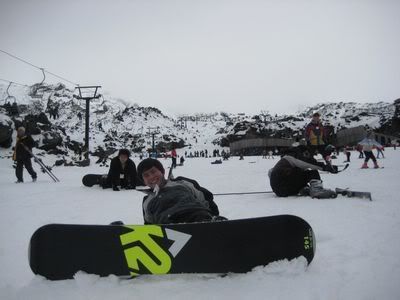 Wah lao.. snowboarding is tough job sia.. my hands no strength to push my body up.. n its like once u stand.. u start to slide down le.. wth.. can die sia the feeling.. hahaha.. everytime.. immediately stand.. slide a bit.. fall le.. haha..then after awhile started to give up le.. so tiring lah.. thought its here to enjoy.. have fun.. but I feel so tired.. hahaha.. then abriel thought me a way that is more fun.. hahahaha.. just sit on the board n slide down.. hahahha.. oh.. so much easier.. hahaha..