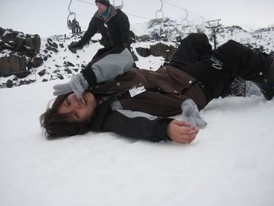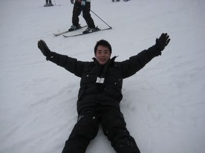 Then sat the lift up agn.. then they wanted to try something out.. then I say dun wan.. I rather sit 1 side n play with snow.. haahha.. Eileen sat with me.. coz she oso tired of it.. hahaha.. then we made snowman.. then laura later came.. n made a snow angel.. hahahhaa.. damn funny.. the guys were good at snowboarding sia.. haiz..