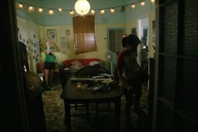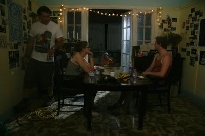 at a small house.. nice and cosy.. and so freaky hot!! Its like 20 pple in this small house.. + big lightings.. haiz.