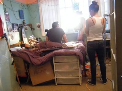 Box at bed .. n blanket covering it.. made the whole bed look real.. n the same guy fell through it twice.. hahaha..